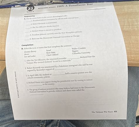 Read Online Reteaching Activity 1968 A Tumultuous Year Answers PDF