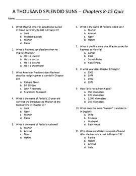 Read Online Thousand Splendid Suns Questions With Answer Key Epub