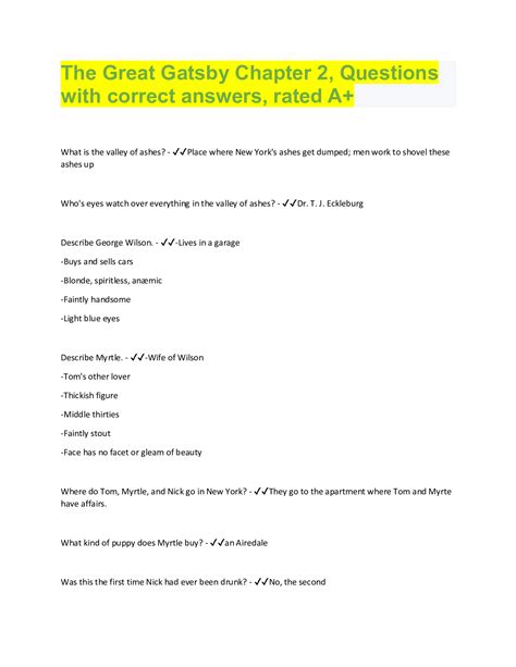 Read The Great Gatsby Chapter 2 Questions And Answers Doc