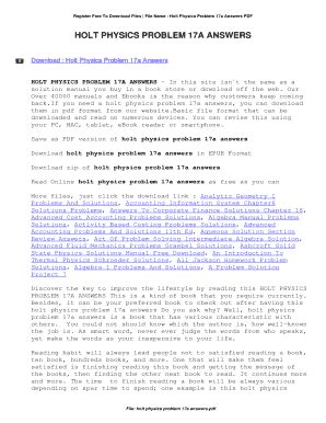 Download Holt Physics Problem Workbook Answers 17a Reader online is a convenient and frugal way to read Holt Physics Problem Workbook Answers 17a you love right from the comfort of your own home. Yes, there sites where you can get Reader "for free" but the ones listed below are clean from viruses and completely legal to use.